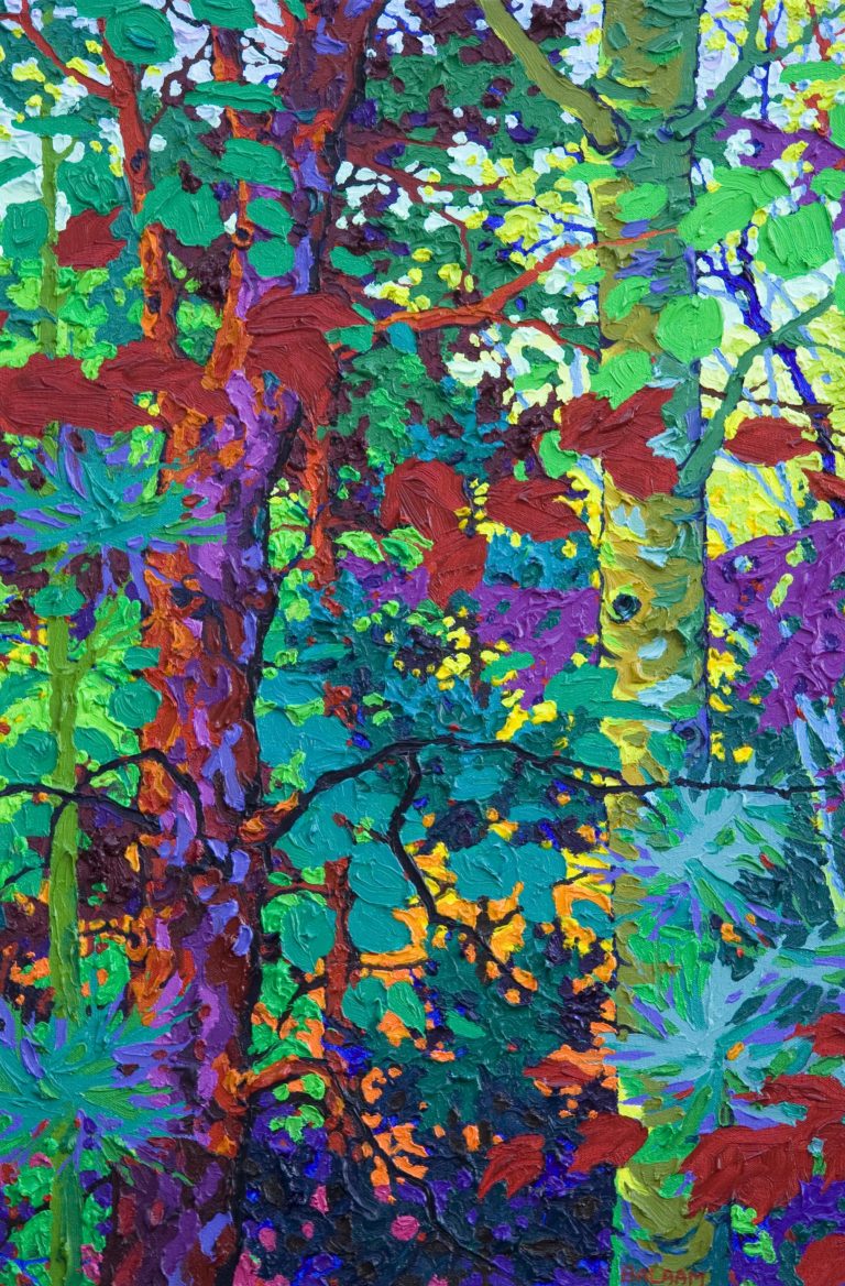 “I enjoy the passion of oil paint, the surface, the thick brushstrokes loaded with pigment and the flamboyant interaction of colour. I combine all the elements of seeing and painting where they coalesce into an identifiable whole, allowing the viewer to inhabit both journey and destination with barely a fractional alteration in perception.” FB